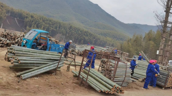 为抢抓机遇,2007年,鲁继平在茗岭村承包了2.8万亩毛竹林,组建了江苏亨达竹格填料有限公司,踏上了竹格填料的专业研发生产之路。断料、开片、打磨……如今,平均每天有超500立方米的竹片经过十多个流程,经过智能化生产线处理后,成为一根根规格统一的弧形竹片,再通过穿杆串联、上下交错的垂直叠放后,销往国内100多家钢铁厂、电厂,成为冷却塔中的“标配”。企业原材料“仓库”毛竹林也扩大到了目前的5万亩。